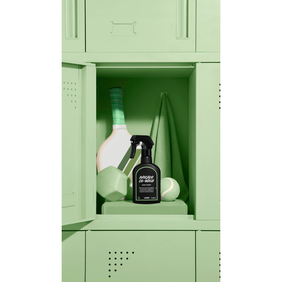 This bottle is made from 98% recycled plastic, minus the label which we’re working on. The trigger is made from a mix of virgin and recycled materials. Bring your empty body spray back to a Lush store for 50p off your shop.