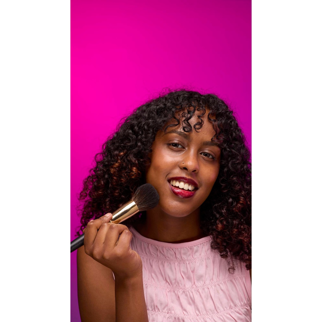 Simply take your People Powder brush, tap into the product and apply a light dusting of Emotional Brilliance to the skin to perfect makeup application.