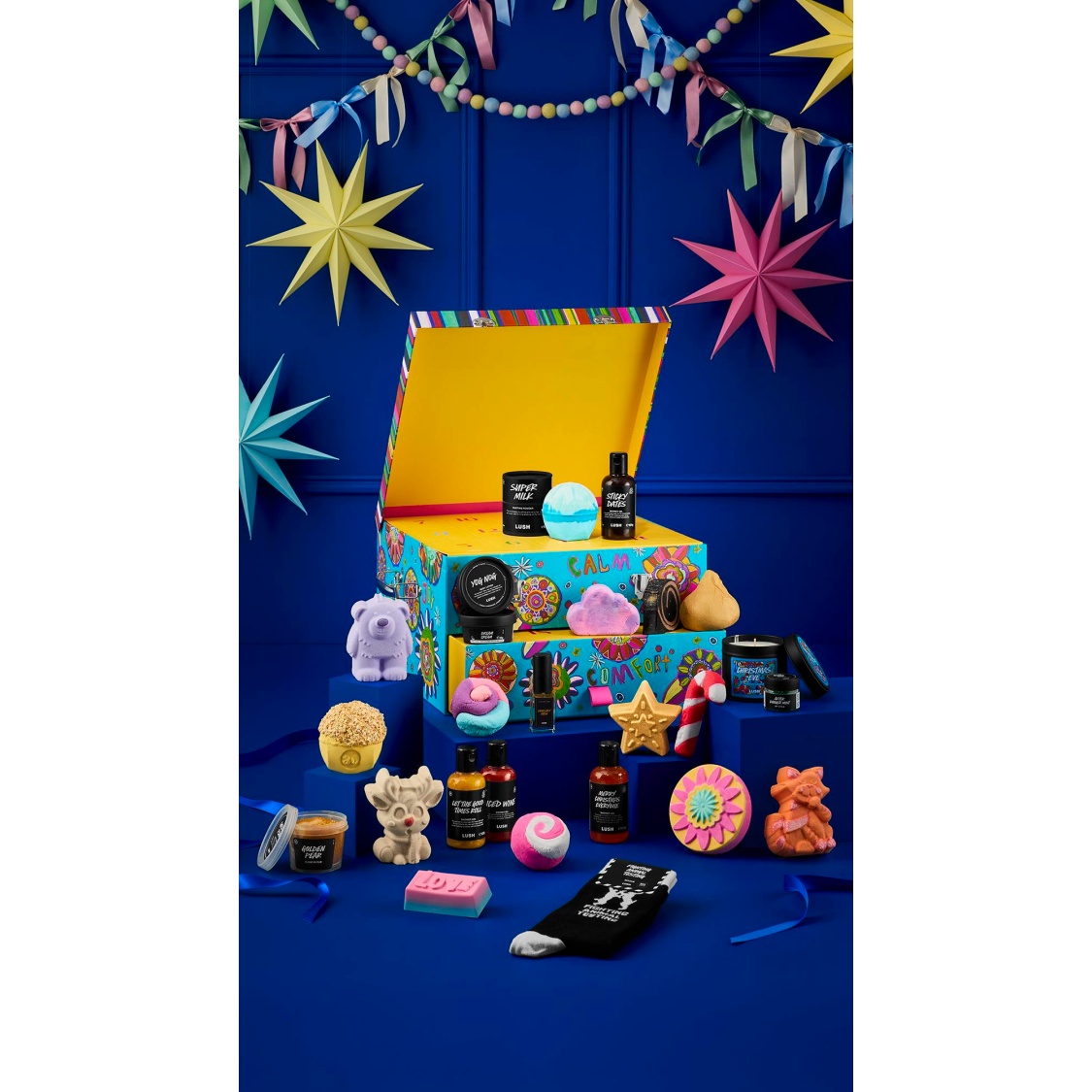 It truly is the best time of the year and that’s not just because you get to open a Lush gift everyday, but it is a good reason. Countdown to the big day with 25 hand-selected products to get you in the Christmas spirit, including year-round favourites, products from our Christmas range and ten gift-exclusive products. Your wish has come true – with bath bombs, shower gels, soaps, even candles and socks, it will feel like Christmas everyday!