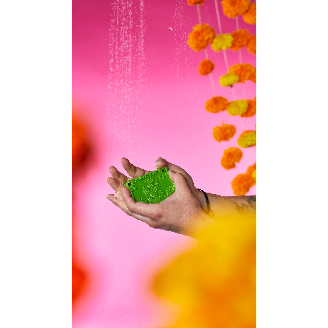 This Día de Muertos, adorn your space with this 2-in-1 Papel Picado soap, for a joyfully fragrant and colourful reunion. When the parranda is over, lather up in refreshing litsea cubeba and bergamot oils to cherish the sweet memories! Designed by Co-creator Jazmin Guerra Langston, each colour of soap features a different bespoke illustration, courtesy of Jazmin’s multi-talented colleague, Mia Rivera Morales.